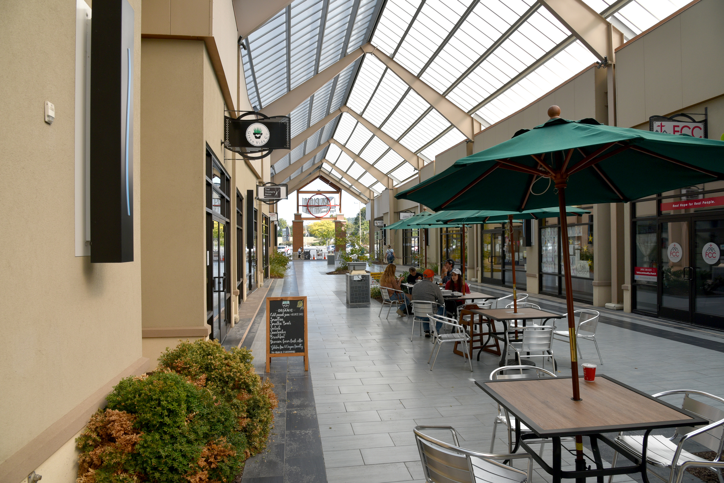 Park Plaza is a modern, open-air concept, facility that features a spectacular translucent atrium roof that offers shoppers protection from the elements but also offers a shopping experience that is unlike anything in the Lehigh Valley. No matter what the weather is like, you can stroll to the many eateries and activity centers in an atmosphere that is unique to Park Plaza in Forks Township.